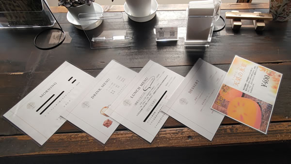 カフェ「心清水」のメニューは、以下のとおりです。